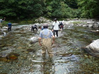 ◆県の指導によりアユ産卵場の整備と子持ちアユの放流を行いました。