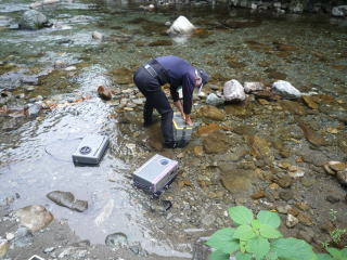 大滝ダム湖でのアユの自然遡上を調査するため、県の協力により、